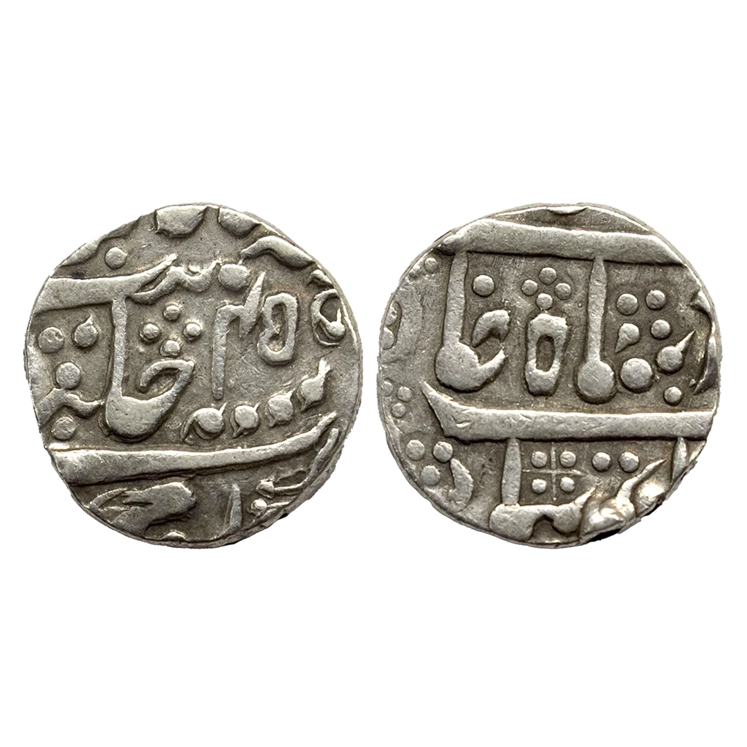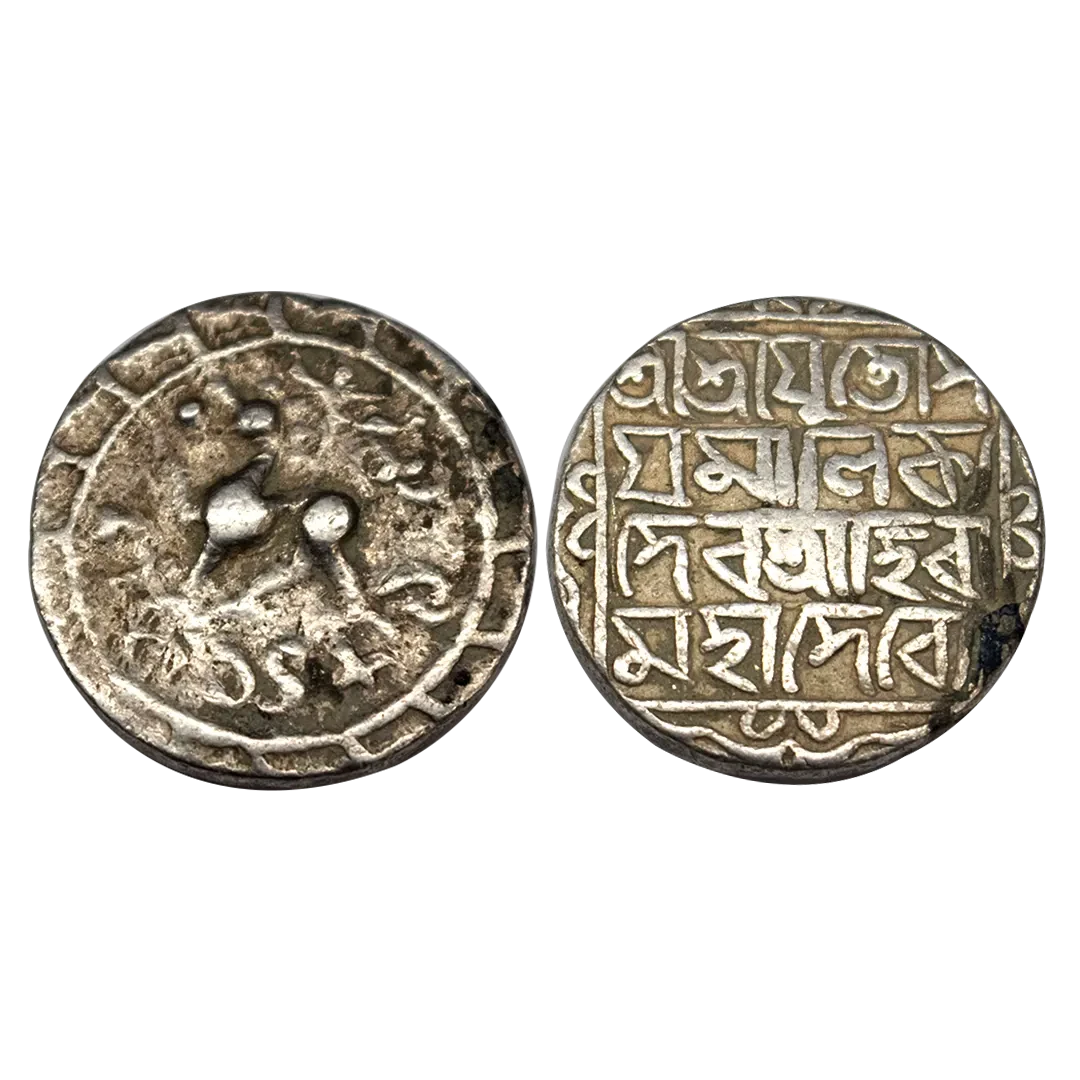 Tripura, Udaya Manikya (SE 1489-1495; 1567-1573 AD), Silver Tanka, 10.70g, Saka 1489, citing Queen Hira, obv. lion facing left, rev. Sri Sri Yutoda/ya Manikya/ Deva Sri Hira/ Maha Devyau within square with ornamental border, (R&B 133). Very Fine+, Rare