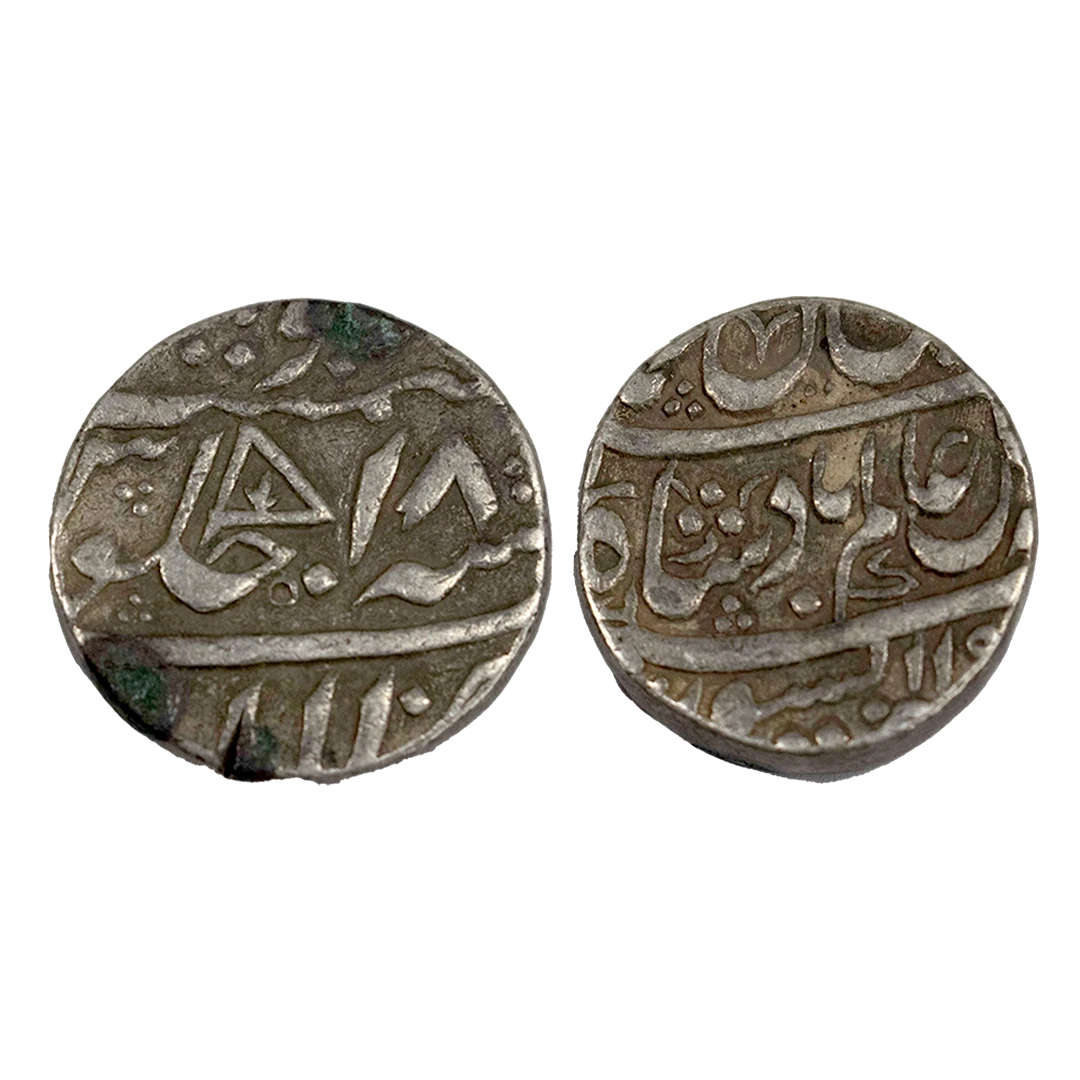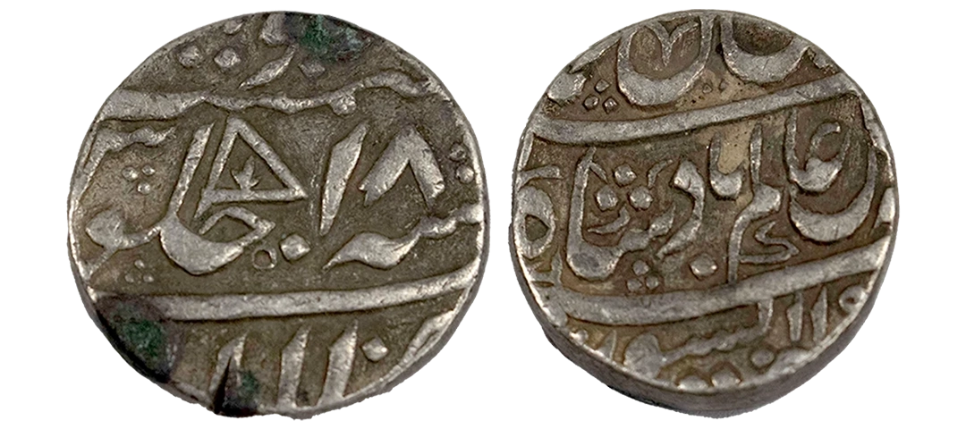 Tripura, Rama Manikya (1676-1685 AD), Silver ¼ Tanka, 2.26g, SE 1598. Obv: Lion facing left, crescent and dot above. Rev: Bangla legend Sri Sri Yu / ta (Shiva Ling) Ra / ma Devah in three lines, (R&B T-219). About Extremely Fine, Very Rare.