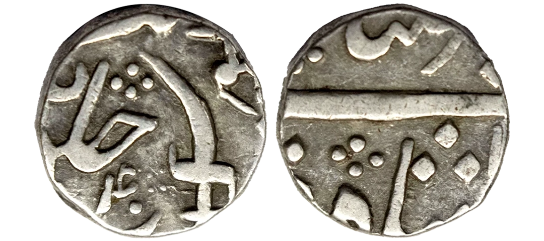 Baroda, Sayaji Rao III, Silver Rupee, 11.30g, AH 1299, Nagari initials ‘Sa’ ‘Ga’ with scimitar and katar (KM Y29). Very Fine.