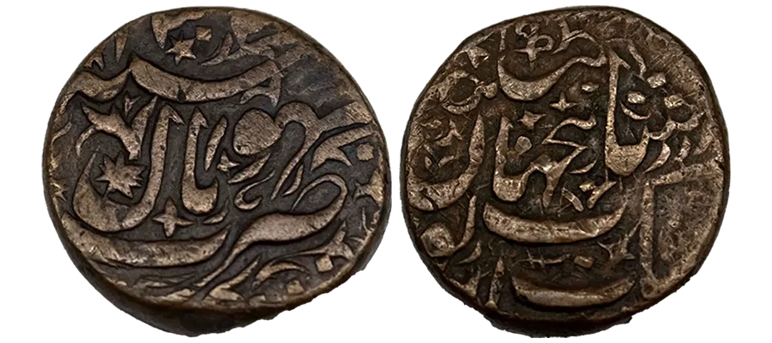 Baroda State, Ganpat Rao (AH 1264-1272, 1847-1856 AD), Copper Paisa, Amreli Mint, AH 1266, KM # C39.2, 7.2g, very fine+, rare.