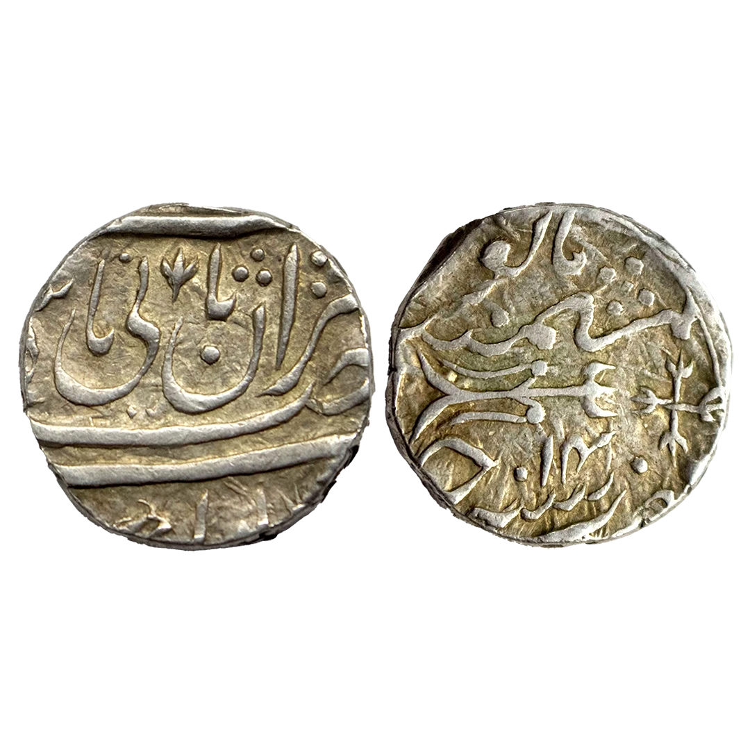 Bharatpur State, Ranjit Singh (AH 1190-1220, 1776-1805 AD), INO Shah Alam II (AH 1174-1221, 1759-1806 AD), Silver Rupee, Maha Indrapur (Dig) Mint, RY 15, KM # 88, 11.27g very fine, scarce.