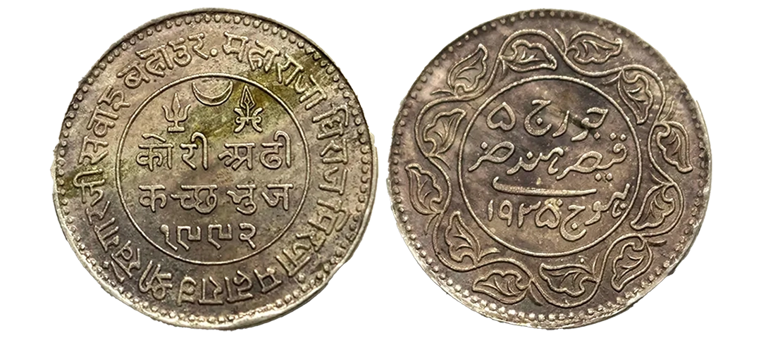Kutch, Khengarji III, Silver 2 ½ Kori, 6.87g, with the name of George V, VS 1992/1935 AD, (KM 52a). Extremely Fine.