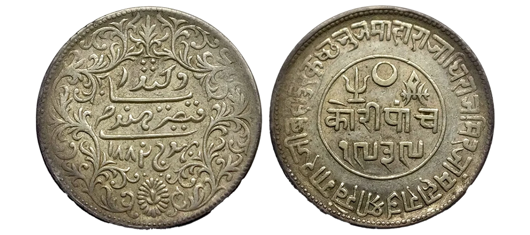 Kutch, Khengarji III (VS 1932-1998; 1875-1942 AD), Silver 5 Kori, with the name of Victoria, VS 1939/1882 AD, About Extremely Fine.