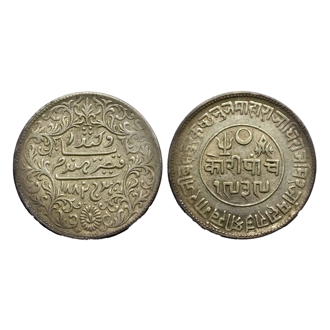 Kutch, Khengarji III (VS 1932-1998; 1875-1942 AD), Silver 5 Kori, with the name of Victoria, VS 1939/1882 AD, About Extremely Fine.