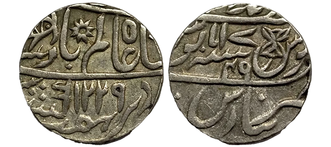 Bengal Presidency, Muhammadabad Banaras Mint, Silver Rupee, 11.31g, in the name of Shah Alam II, fish, sun-burst and flower mint marks on obv. AH 1229/49 (Prid 279, KM 32). Extremely fine