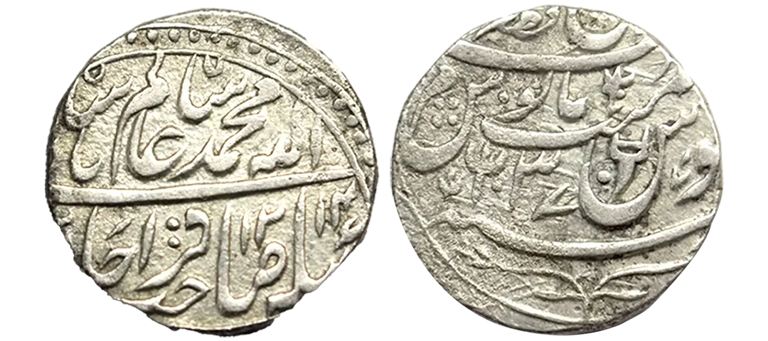 Bengal Presidency, Muhammadabad Banaras Mint, Silver 1/8 Rupee, 1.33, in the name of Shah Alam II, RY 49, sun-burst symbol on obv., Darogha mark on rev. (Stevens # 7.133). Extremely fine.