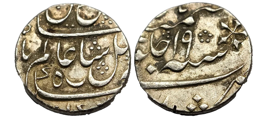 Bengal Presidency, Murshidabad mint, silver rupee, struck at Patna (dot in left side first circle on obverse), in the name of Shah Alam II, ND/RY 19, PR 169, Weights 11.46g. Very fine, Rare.
