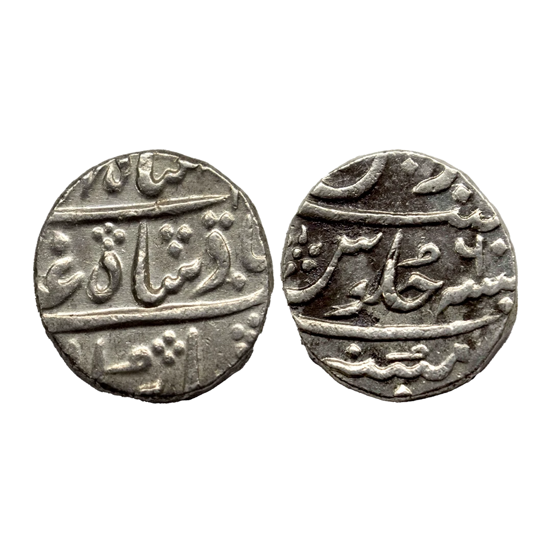 Bombay Presidency, INO Muhammad Shah (AH 1131-1161, 1719-1748 AD), Silver Rupee, Mumbai Mint,Stevens EIC # 2.32-2.33, 5.68g, very fine, scarce.