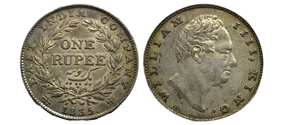 Madras Presidency, Madras mint, silver ¼ pagoda, second issue, ND (1808-1812 AD), KM 352, 10.01g. Obv: Value in English and Persian, buckled garter, 9+9 star around both side of Gopuram. Rev: Value in Tamil and Telugu around, deity Vishnu within two circles of beads.