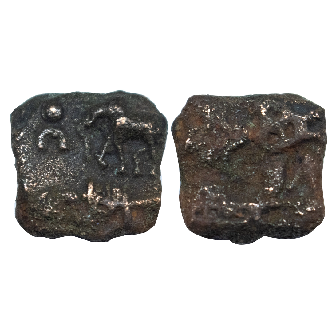 Post Mauryan, Sunga Dynasty, Anepigraphic Series, (2nd century BC), Cast Copper Unit, 0.91 gms, Obv. railed tree. Rev. Hollow cross, Pieper#215, very fine, scarce.