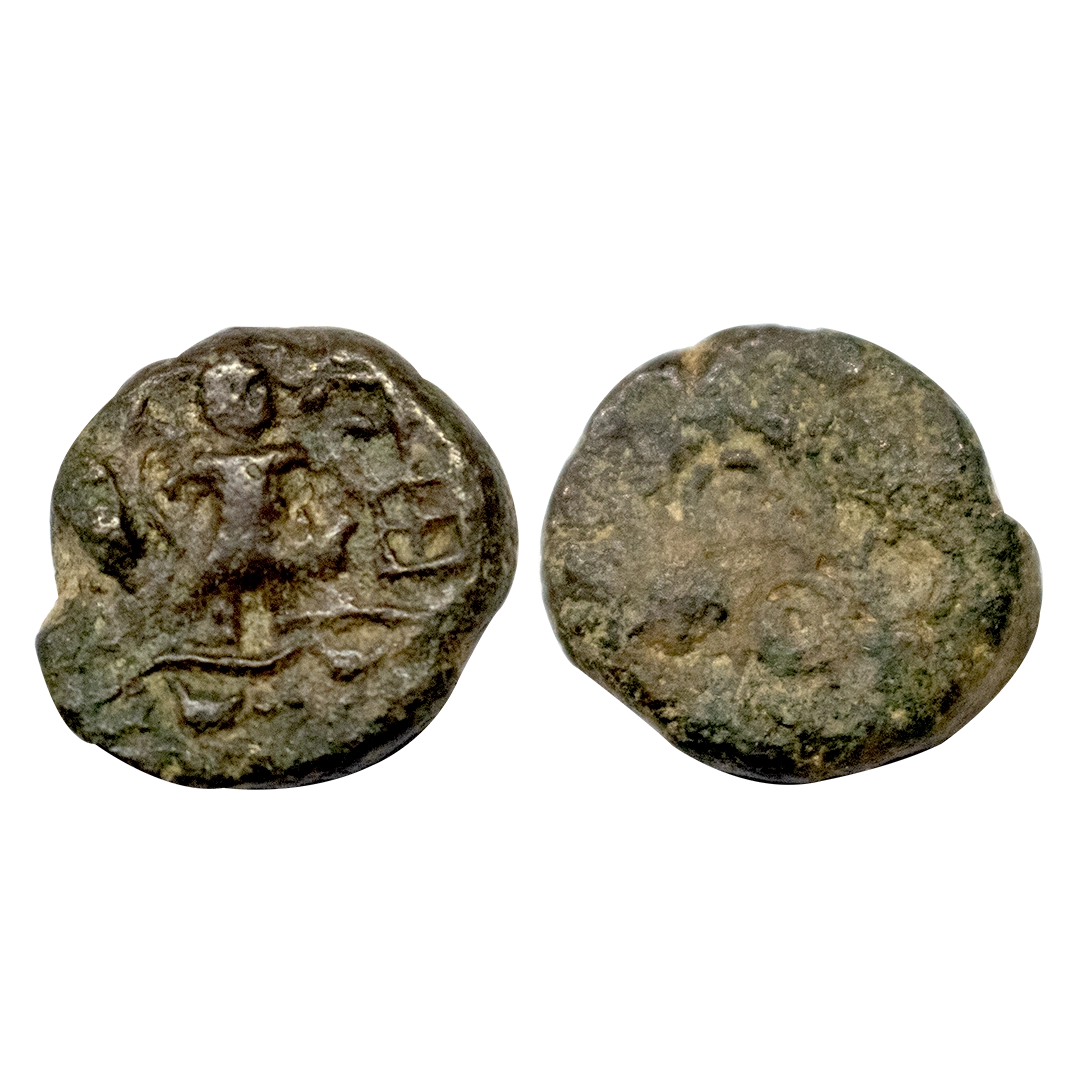 Taxila, (2nd-1st Century BC), Lion-Elephant type, Copper Unit, 13.04 gms, Obverse: Lion to right facing three arch hill (chaitya), Swastika above, Reverse: Elephant to left, Three arch hill above, Pieper # 1494, very fine, scarce.