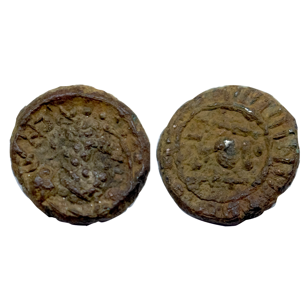 Karkota Dynasty, Kashmir, Pratapaditya (7th Century AD), Debased Gold Dinara, 7.08 gms, Obverse: A crude depiction of standing king, Late Brahmi Legend “KiDa(Ra)” in right field, Reverse: A crude depiction of Goddess Lakshmi, Late Brahmi Legend “ShriPraTaPa” in right field, “(Di)Tya” in left field, Deyell # Treasure, Trade and Tradition, Fig. 4.1, very fine, rare in this grade.