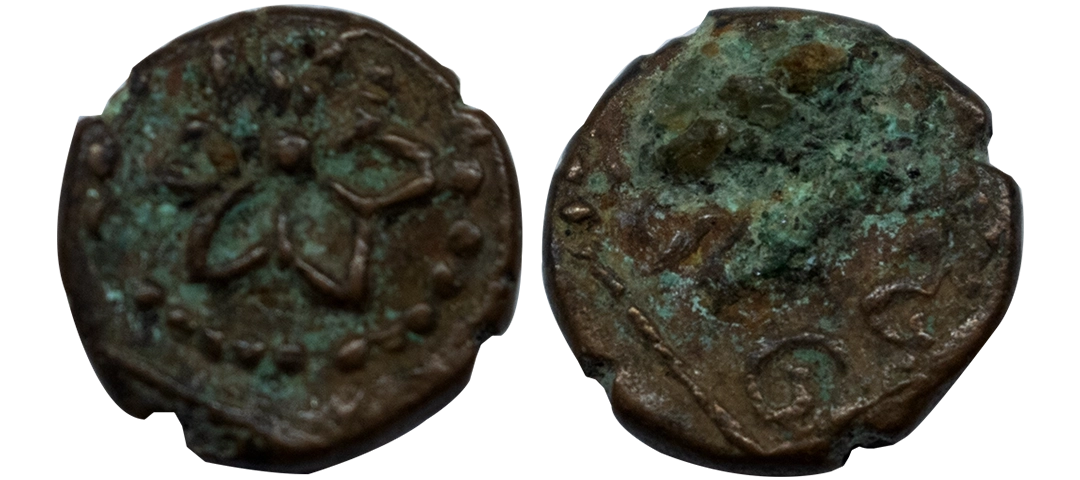 Medieval, Arcot Nawabs (1670-1740 AD), Copper Kasu, 1.71 gms, Obv. Flower, Rev. tamil script ‘tinaveli’, very fine, scarce.