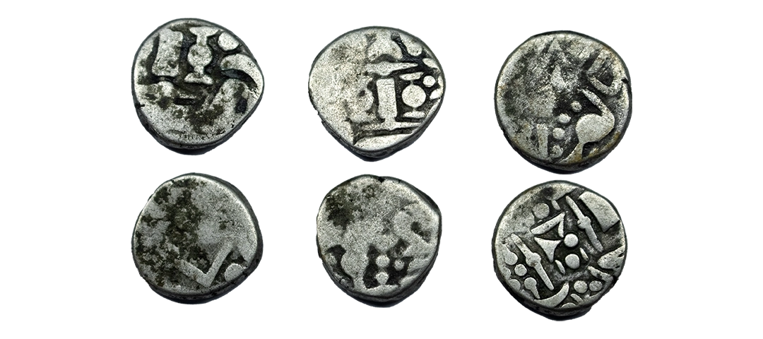Indo Sassanian type, Anonymous issue from NW India, (7th-8th Century AD), Billon Unit, 3.72 gms, Obverse: Bust of King to right within a dotted border, An elobarate diadem on the king’s head, Reverse: A crude depiction of the Sassanian fire altar flanked by attendents, A dotted border around, fine to very fine, scarce.