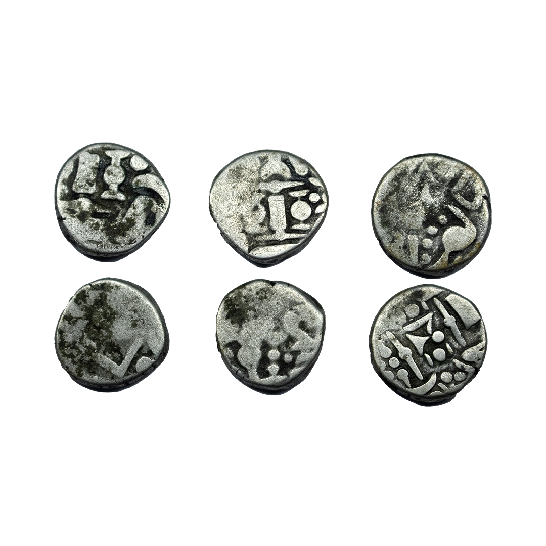 Indo Sasanian type, Anonymous issue from NW India, (7th-8th Century AD), Billon Unit, Group of 3 Coins, Obverse: ver crude diademed bust of King to right, Reverse: a very crude depiction of the Sasanian fire altar flanked by attendents on both side, about very fine, scarce.