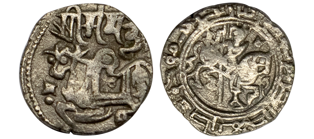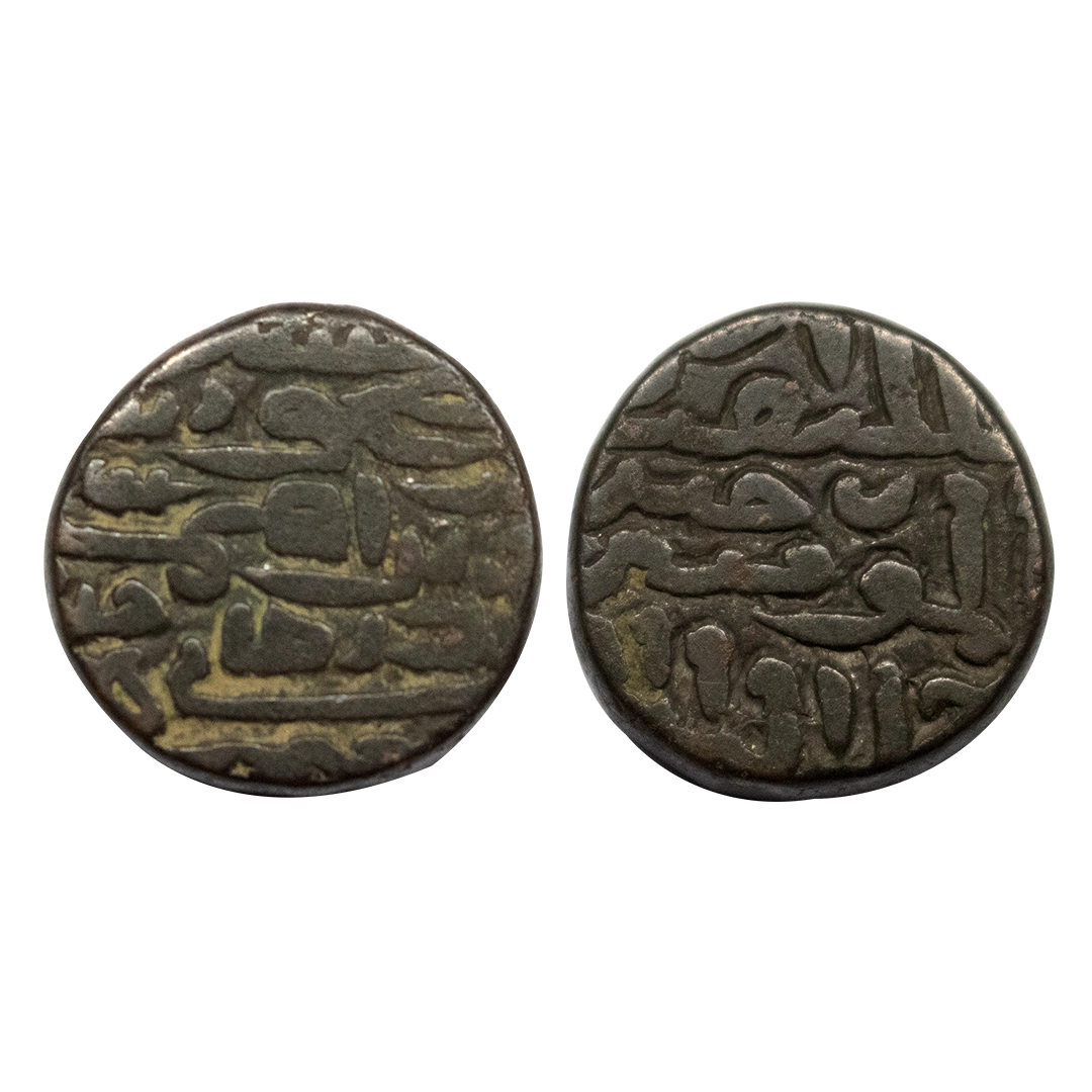 Ghaznavids, Shihab-ud-daula Maudud (AH 433-442 /1041-1050 AD), Billon Jital, 3.01 gms Obv: Bull facing to right, "Sri Samanta Deva" above in Sharada characters, Rev: Horseman on right within double circle, Arabic legend month "Rajjab Maudud" in the margin date off flan, GG # GZ13, about very fine, rare.