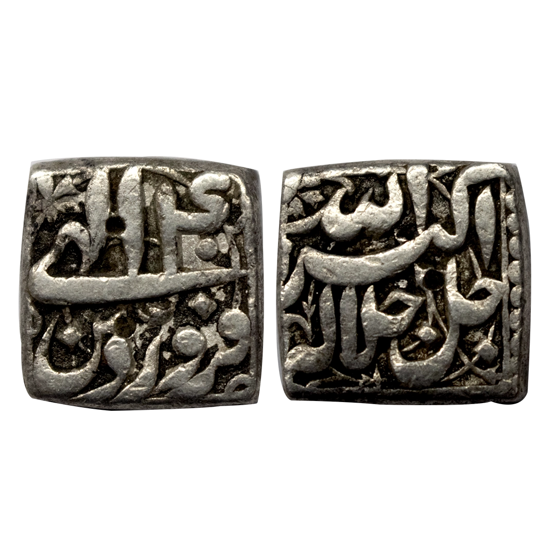 Akbar (AH 963-1014, 1556-1605 AD), Silver Square Rupee, 11.36 gms, Mintless, Monthless, Type, Jalla Jalalahu, Year 33, KM # 91.1, very fine, scarce.