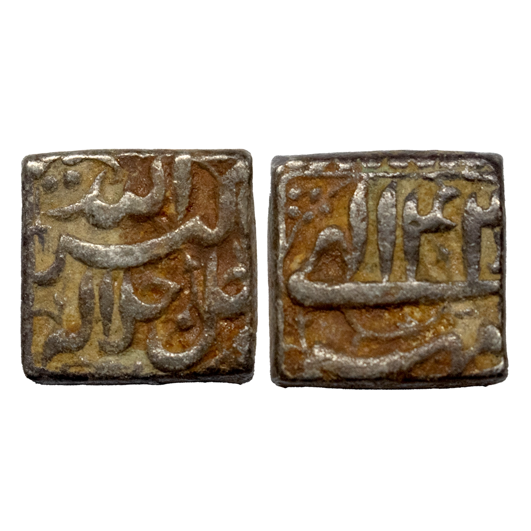 Akbar (AH 963-1014, 1556-1605 AD), Silver Square Rupee, 11.36 gms, Mintless, Monthless, Type, Jalla Jalalahu, Year 33, KM # 91.1, very fine, scarce.