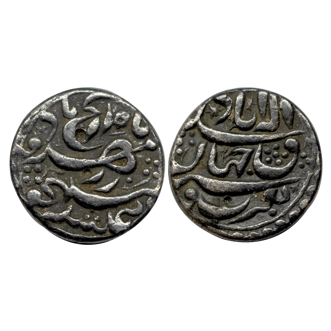 Akbar (AH 963-1014, 1556-1605 AD), Silver Square Rupee, 11.23 gms, Ahmadabad Mint, AH 999, KM # 82.1, very fine, scarce.