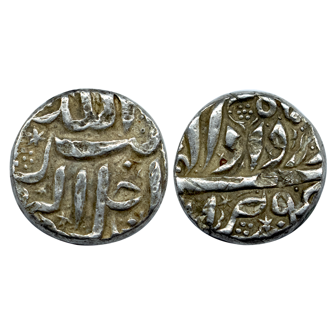 Akbar (AH 963-1014, 1556-1605 AD), Silver Square Rupee, 11.28 gms, Dar-ul-Sultanat Ahmedabad Mint, AH 998, KM # 82.1, very fine, scarce.
