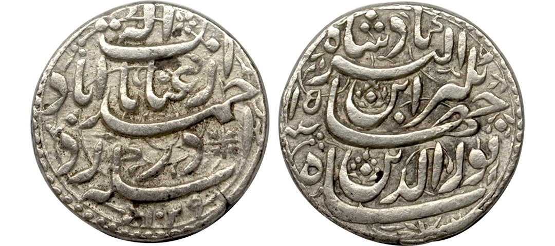 Jahangir (AH 1014-1037, 1605-1627 AD), Silver Rupee, 11.40 gms, Ahmadnagar Mint, Kalima type, KM # 141.1, very fine+, scarce.
