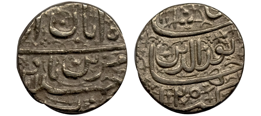 Jahangir (AH 1014-1037, 1605-1627 AD), Silver Rupee, 11.21 gms, Ahmedabad Mint, "Muzaiyan" Couplet, Ilahi Month Shehrewar, AH 1029, KM # 149.2, very fine, very scarce.