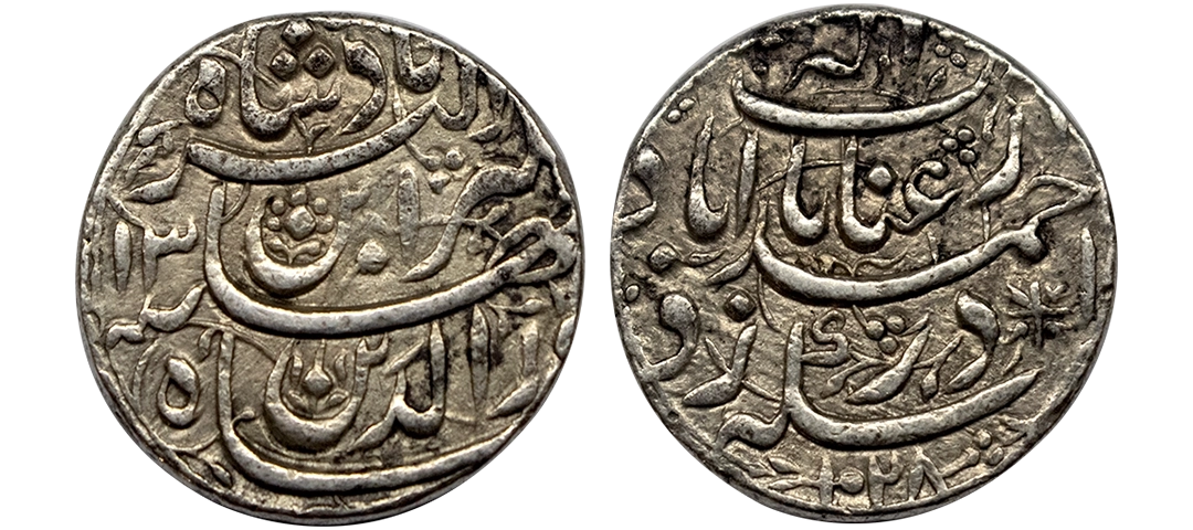 Jahangir (AH 1014-1037, 1605-1627 AD), Silver Rupee, 11.21 gms, Ahmedabad Mint, "Muzaiyan" Couplet, Ilahi Month Shehrewar, AH 1029, KM # 149.2, very fine, very scarce.