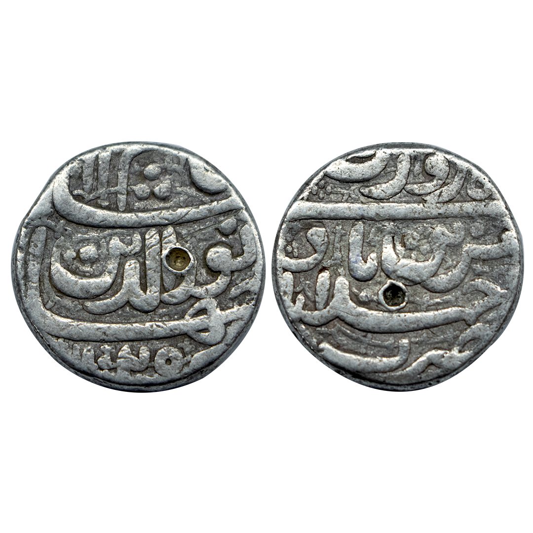Jahangir (AH 1014-1037, 1605-1627 AD), Silver Rupee, 11.21 gms, Ahmedabad Mint, "Muzaiyan" Couplet, Ilahi Month Shehrewar, AH 1029, KM # 149.2, very fine, very scarce.