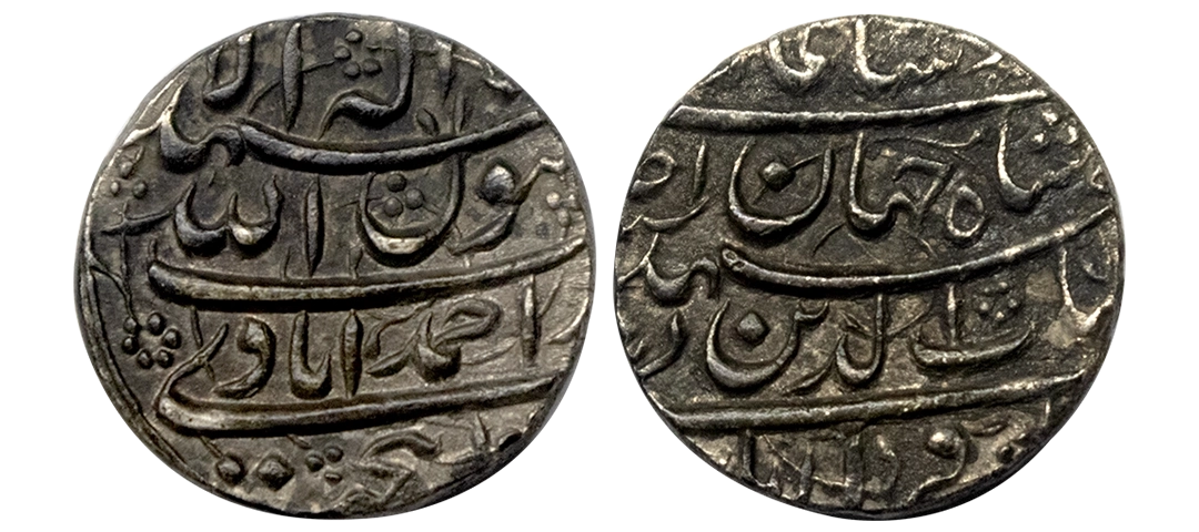 Shah Jahan (AH 1037-1068, 1628-1658 AD), Silver 1/2 Rupee, 5.66 gms, Ahmedabad Mint, Hijri Type, RY Ahd, KM # 213.1, Extremely fine+, very rare.
