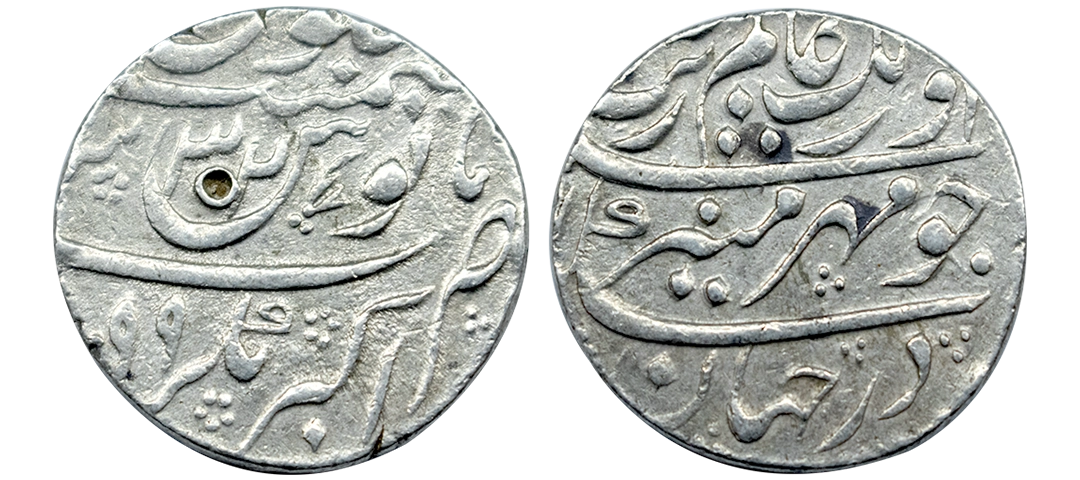 Aurangzeb (AH 1068-1118, 1658-1707 AD), Silver Rupee, 11.48 gms, Ahsanabad Mint, AH 1118, RY 50, KM # 300.4, very fine, very scarce.