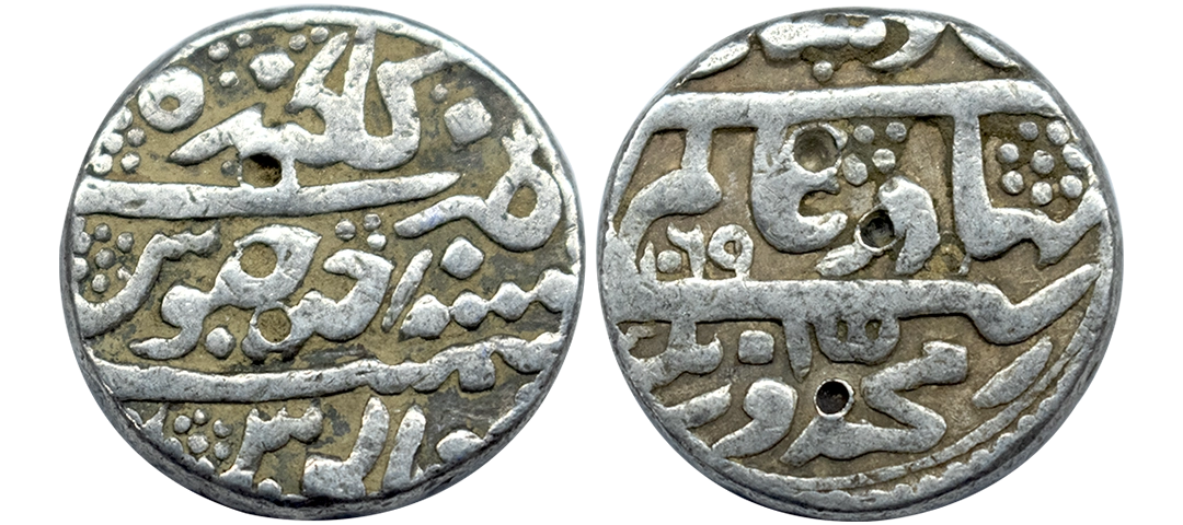 Aurangzeb (AH 1068-1118, 1658-1707 AD), Silver Rupee, 11.40 gms, Bareli Mint, AH 1107, RY 40, KM # 300.19, very fine, very scarce.