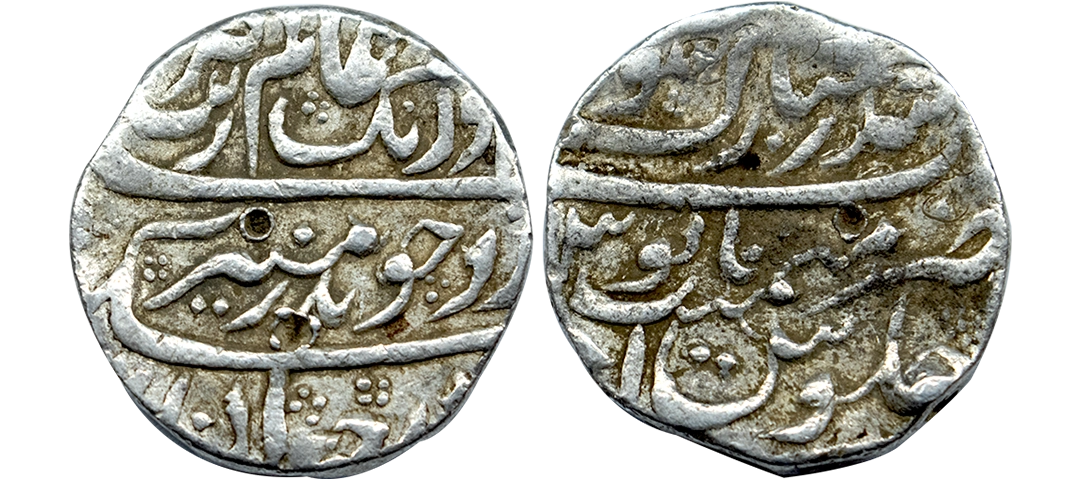 Aurangzeb (AH 1068-1118, 1658-1707 AD), Silver Rupee, 11.39 gms, Bandar-i-Mubarak Surat Mint, RY Ahd, KM # 300.85, about very fine, scarce.