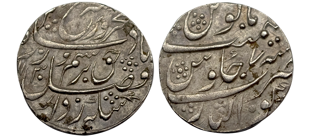 Farrukhsiyar (AH 1124-1131, 1713-1719 AD), Silver Rupee, 11.53 gms, Mustaqir ul-Mulk Azimabad Mint, “Bahr-o-bar” Couplet, RY 6, KM # 377.14, very fine, very scarce.