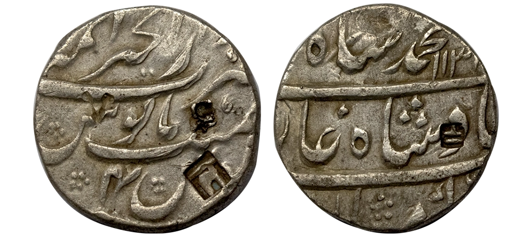 Muhammad Shah (AH 1131–1161, 1719–1748 AD), Silver 1/20 Rupee (suki), 0.56 gms, RY 21, fine, exceedingly rare denomination. Unusual denomination.