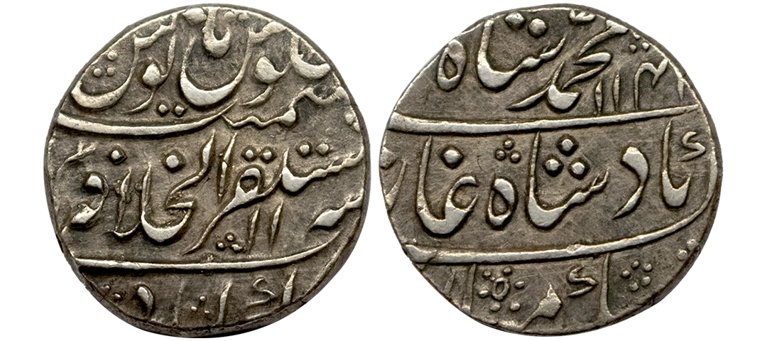 Muhammad Shah (AH 1131–1161, 1719–1748 AD), Silver 1/20 Rupee (suki), 0.56 gms, RY 21, fine, exceedingly rare denomination. Unusual denomination.
