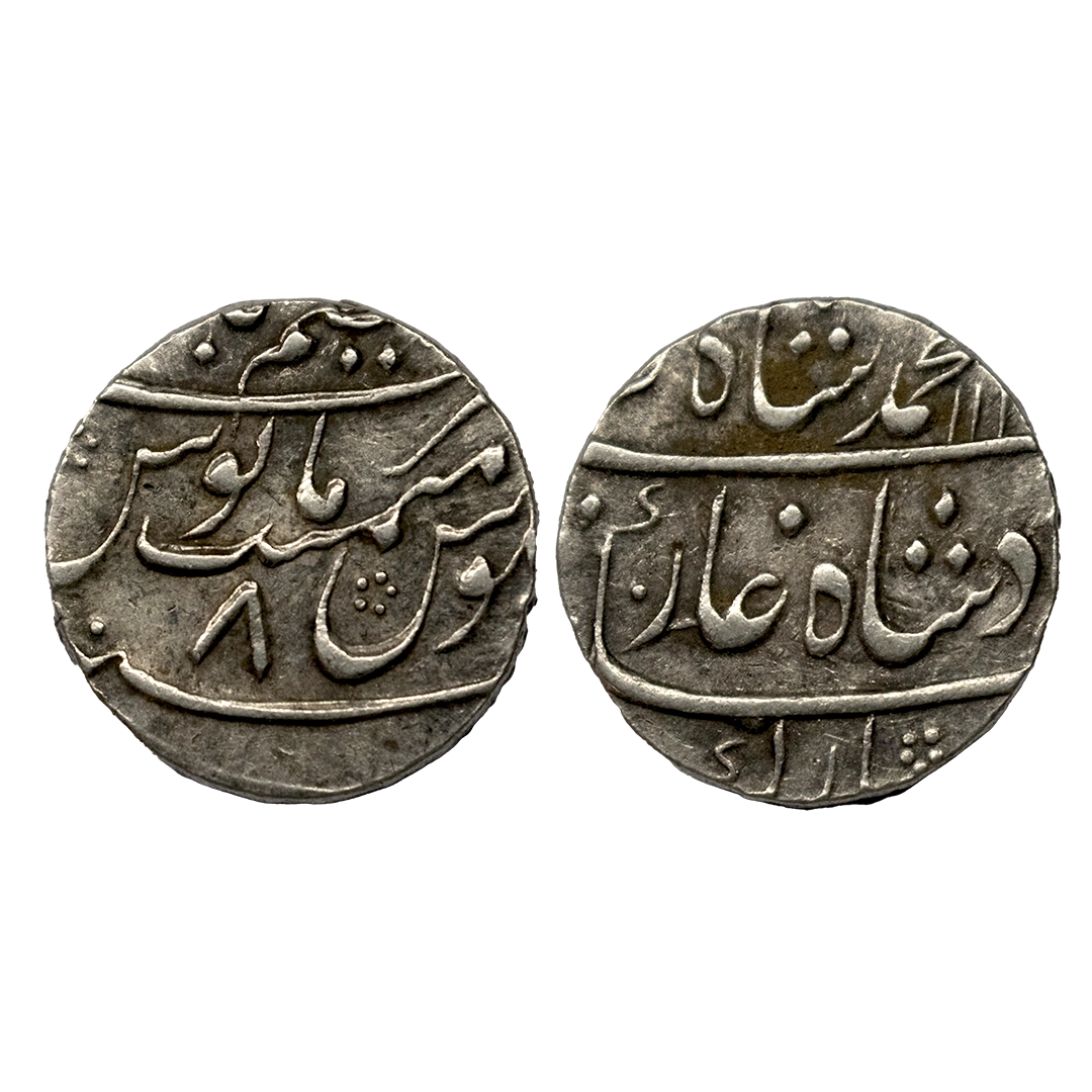 Muhammad Shah (AH 1131-1161, 1719-1748 AD), Silver Rupee, 11.37 gms, Mustaqir-al-Khilafat Akbarabad Mint, AH 114X, RY 11, KM # 436.3, very fine, scarce.
