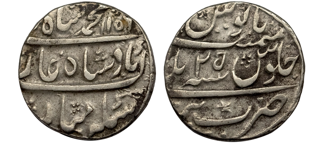 Muhammad Shah (AH 1131-1161, 1719-1748 AD), Silver Rupee, 11.31 gms, 23.41 mm, Azimabad Mint, AH 113x, RY 8, KM # 436.12, very fine, scarce.