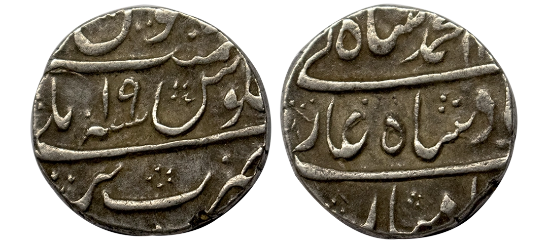 Muhammad Shah (AH 1131-1161, 1719-1748 AD), Silver Rupee, 11.31 gms, 23.41 mm, Azimabad Mint, AH 113x, RY 8, KM # 436.12, very fine, scarce.