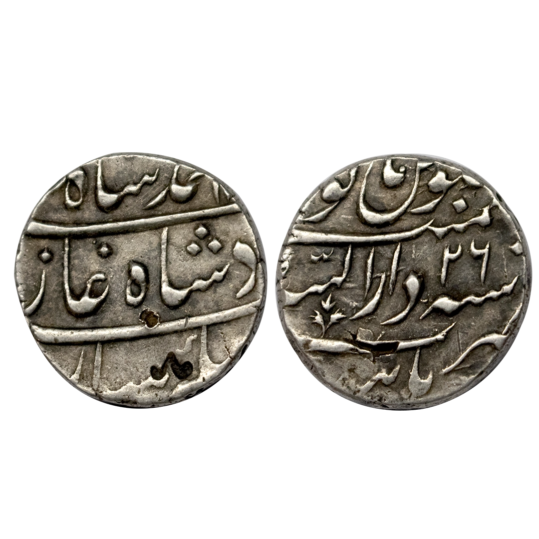 Muhammad Shah (AH 1131-1161, 1719-1748 AD), Silver Rupee, 11.19 gms, Bareli Mint, AH 1156, RY 25, KM # 436.18, very fine, scarce