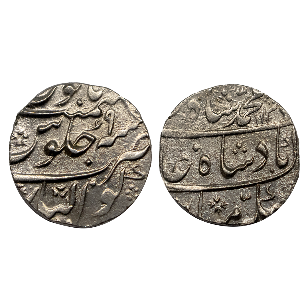 Muhammad Shah (AH 1131-1161, 1719-1748 AD), Silver Rupee, 11.19 gms, Bareli Mint, AH 1156, RY 25, KM # 436.18, very fine, scarce