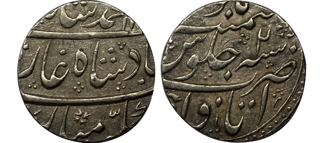 Muhammad Shah (AH 1131-1161, 1719–1748 AD), Silver Rupee, 11.50 gms, Dar as surur Burhanpur Mint, RY 26, very fine, very scarce.