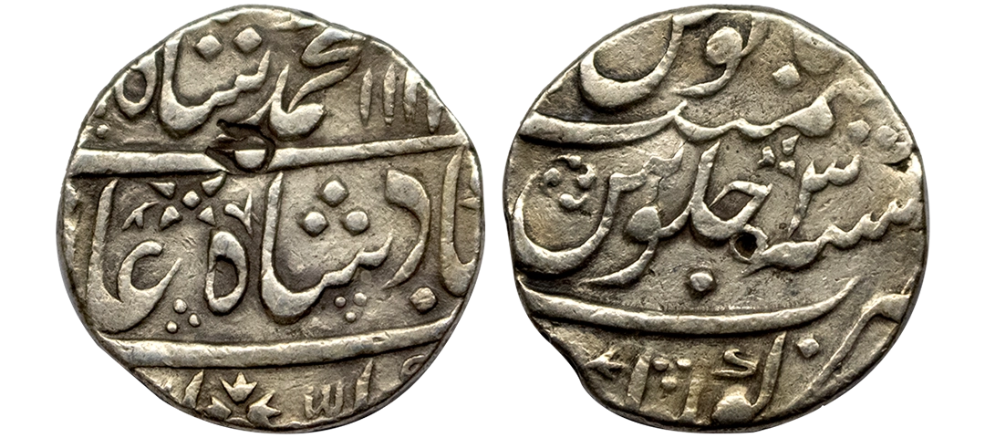 Muhammad Shah (AH 1131-1161, 1719–1748 AD), Silver Rupee, 11.47 gms, Farkhanda Bunyad Hyderabad Mint, KM# 436.26, very fine, very scarce.