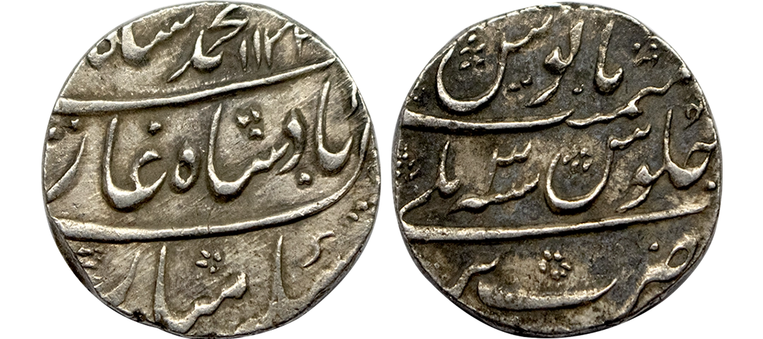 Muhammad Shah (AH 1131–1161, 1719–1748 AD), Silver Rupee, 11.33 gms, Kora Mint, AH 1145, RY 15, KM # 436.39, very fine, scarce.