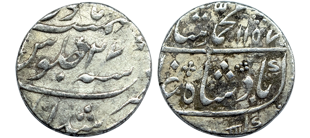 Muhammad Shah (AH 1131–1161, 1719–1748 AD), Silver Rupee, 11.33 gms, Dar us Sultanat Lahore Mint, AH 115X, RY 21, KM # 436.40, very fine, very scarce.