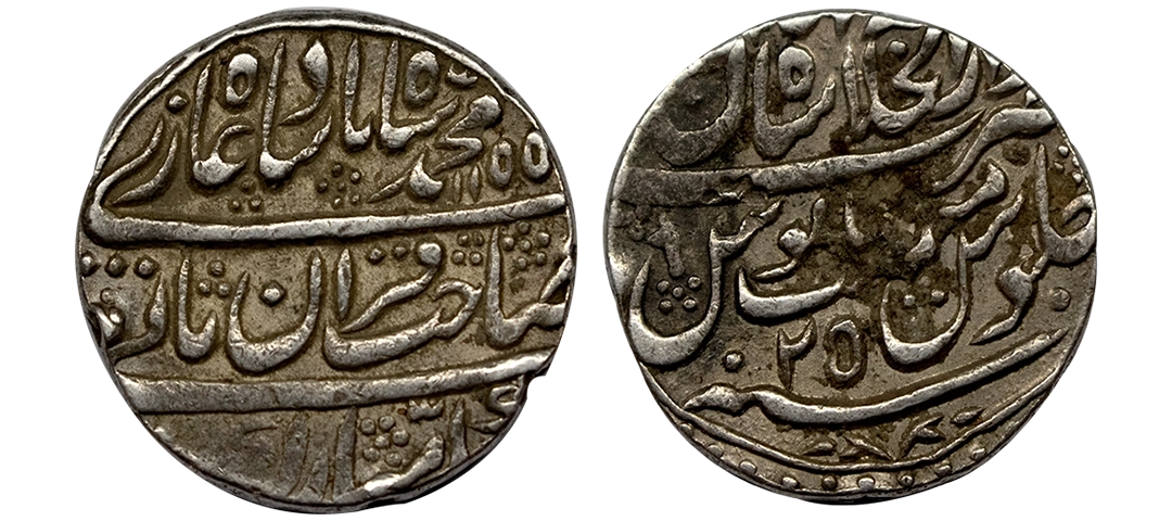 Muhammad Shah (AH 1131–1161, 1719–1748 AD), Silver Rupee, 11.37 gms, Murshidabad Mint, AH 1157, RY 27, KM # 436.46, very fine, very scarce.