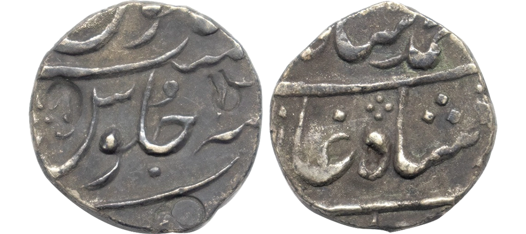 Muhammad Shah (AH 1131-1161, 1719-1748 AD), Silver Rupee, 11.34 gms, Dar-ul-Khilafat Shahjahanabad Mint, AH 1155, RY 25, KM # 437.4, very fine, scarce.