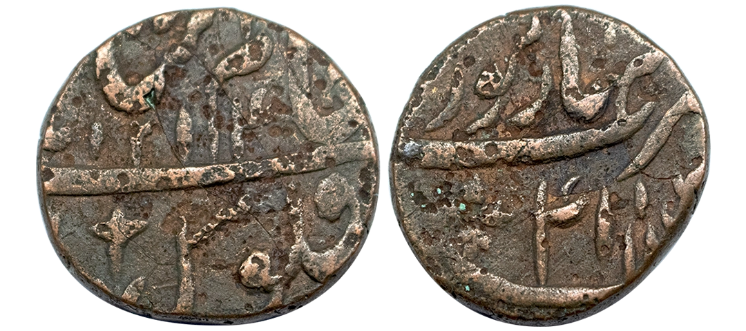 Maratha Confideracy INO Shah Jahan III (AH 1173-1174, 1759-1760 AD), Silver Rupee, 11.24 gms, Ahmadabad Mint(by type), Ankushi type, RY Ahd, KM # 250, M&W # T3, very fine, rare.