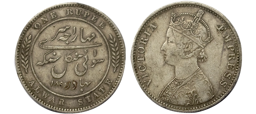 Awadh State, Sadat Ali Khan II (AH 1212-1229, 1798-1814 AD), INO Shah Alam II (AH 1174-1221, 1759-1806 AD), Silver Rupee, 11.16 gms, Muhammadabad Banaras Mint, “Haft Kishwar couplet”, AH 1221, RY 26, KM # 103.2, Kapoor & Master Page 92 Ref 6.34, very fine, scarce.