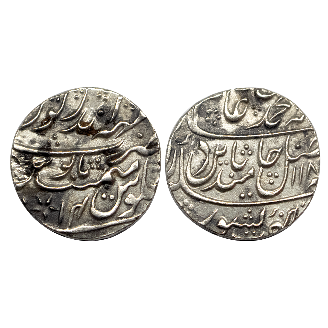 Bharatpur State, INO Alamgir II (AH 1167-1173, 1755-1761 AD), Silver Rupee, 11.12 gms, Maha Indrapur (Dig) Mint, RY 3, KM # 27, very fine, scarce.