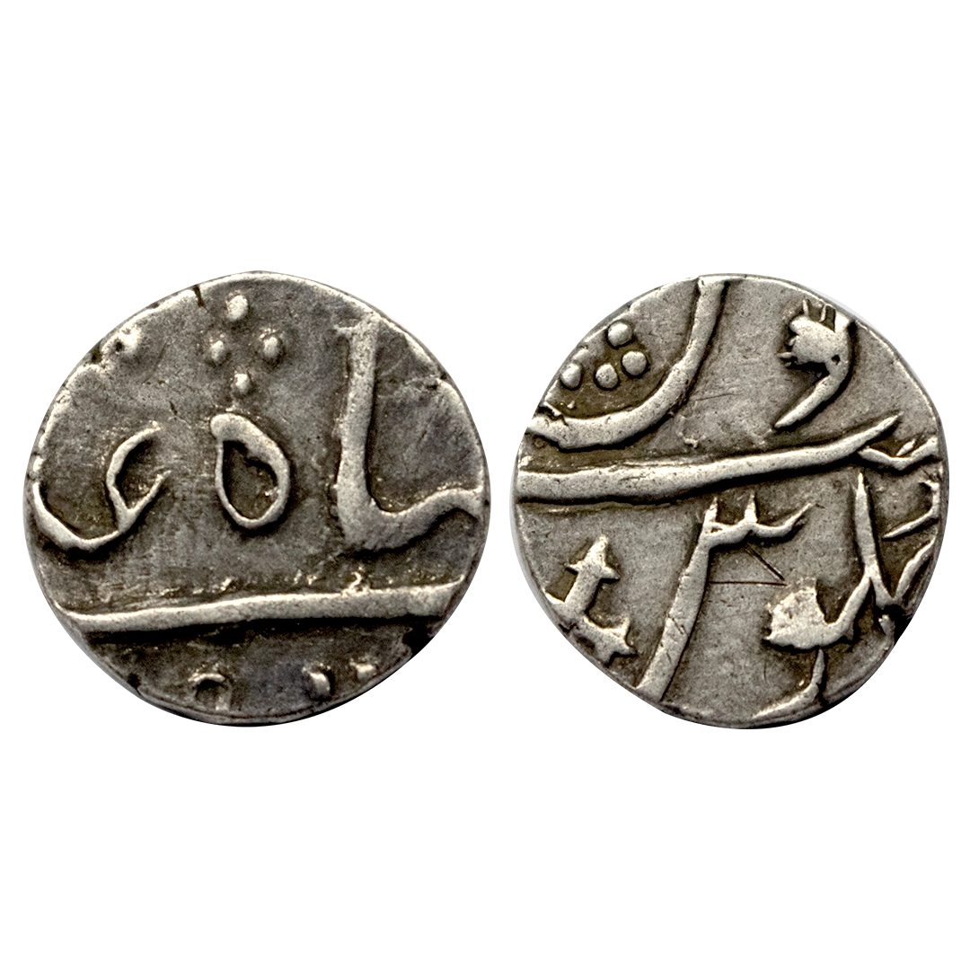 Bharatpur State, Ranjit Singh (VS 1190-1220, 1776-1805 AD), INO Shah Alam II (AH 1174-1221, 1759-1806 AD), Silver Rupee, 10.94 gms, Braj Indrapur Mint, AH 122x, RY 16, KM # 26, very fine+, scarce.